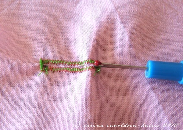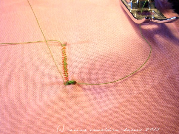 This is the result you should be seeing. But without moving the foot. And possibly not with two different thread colours..